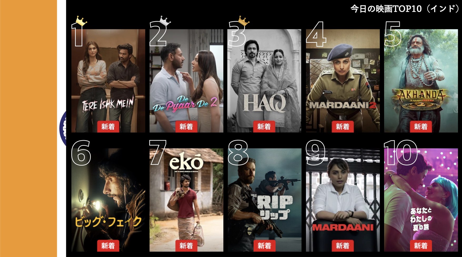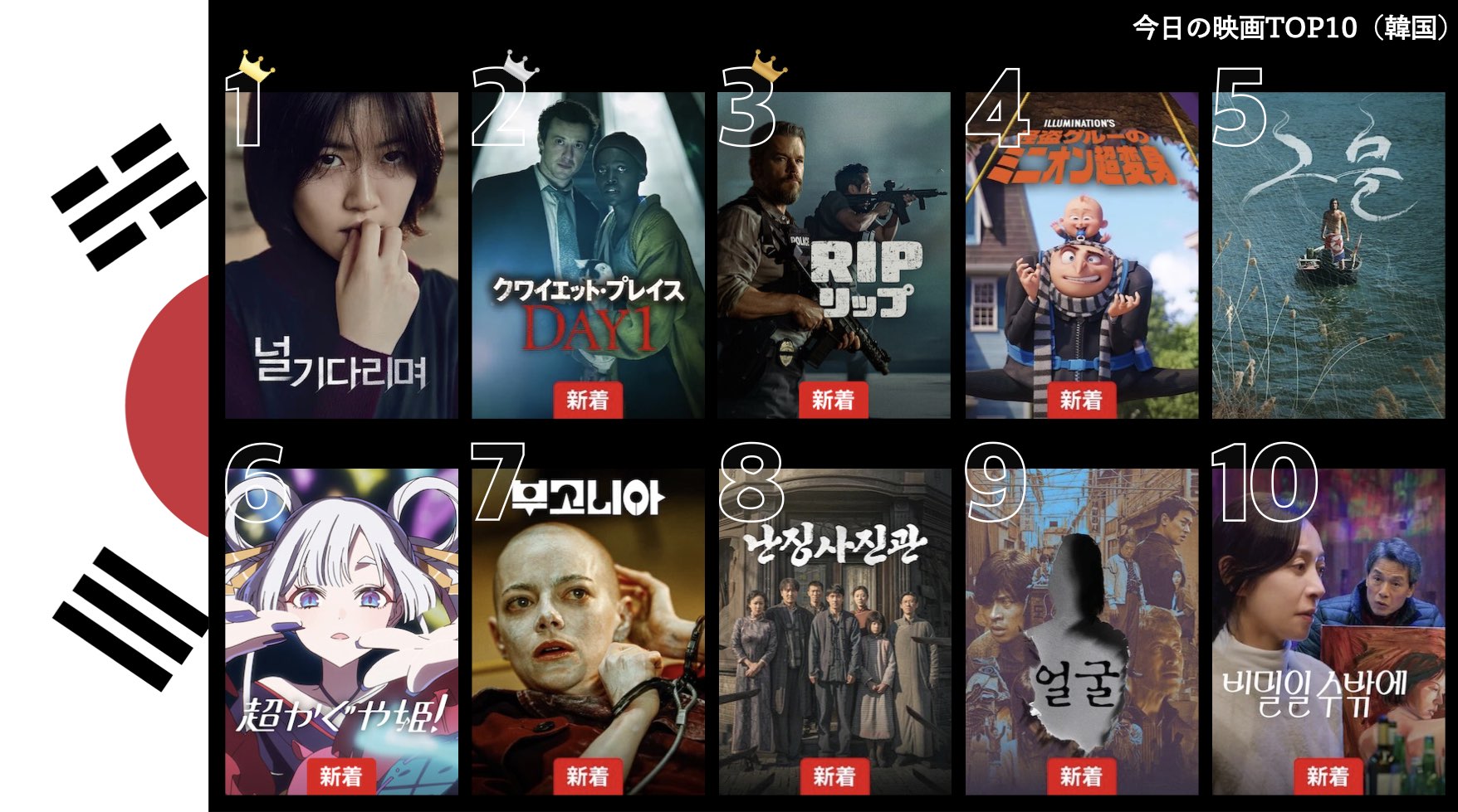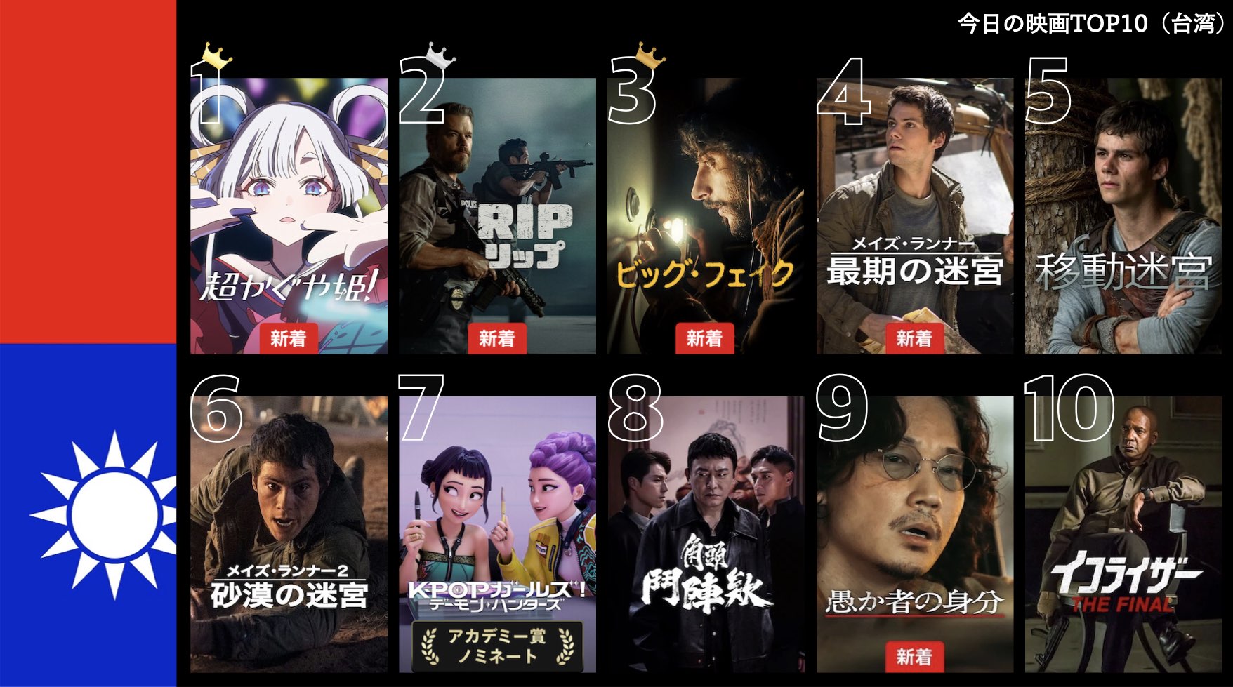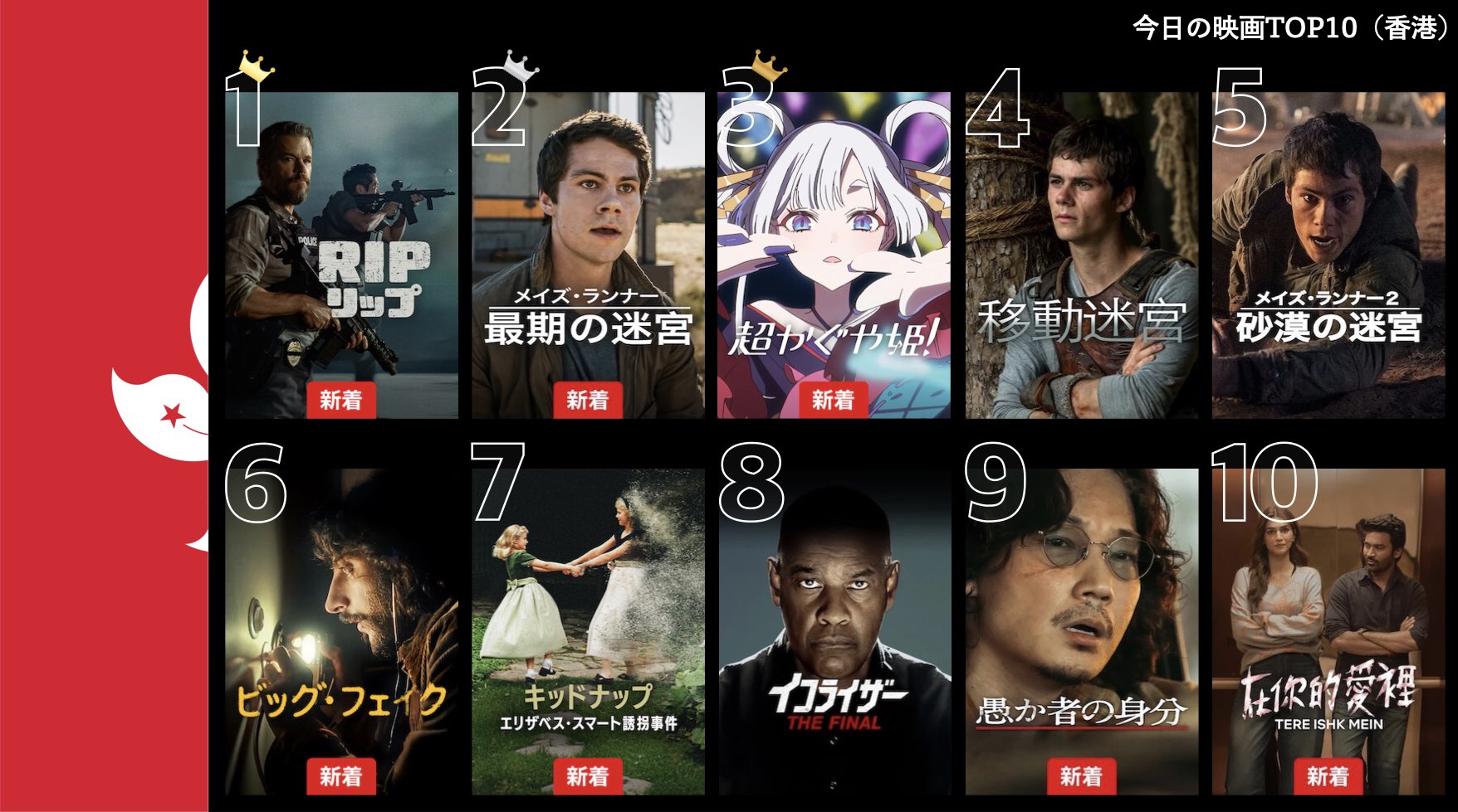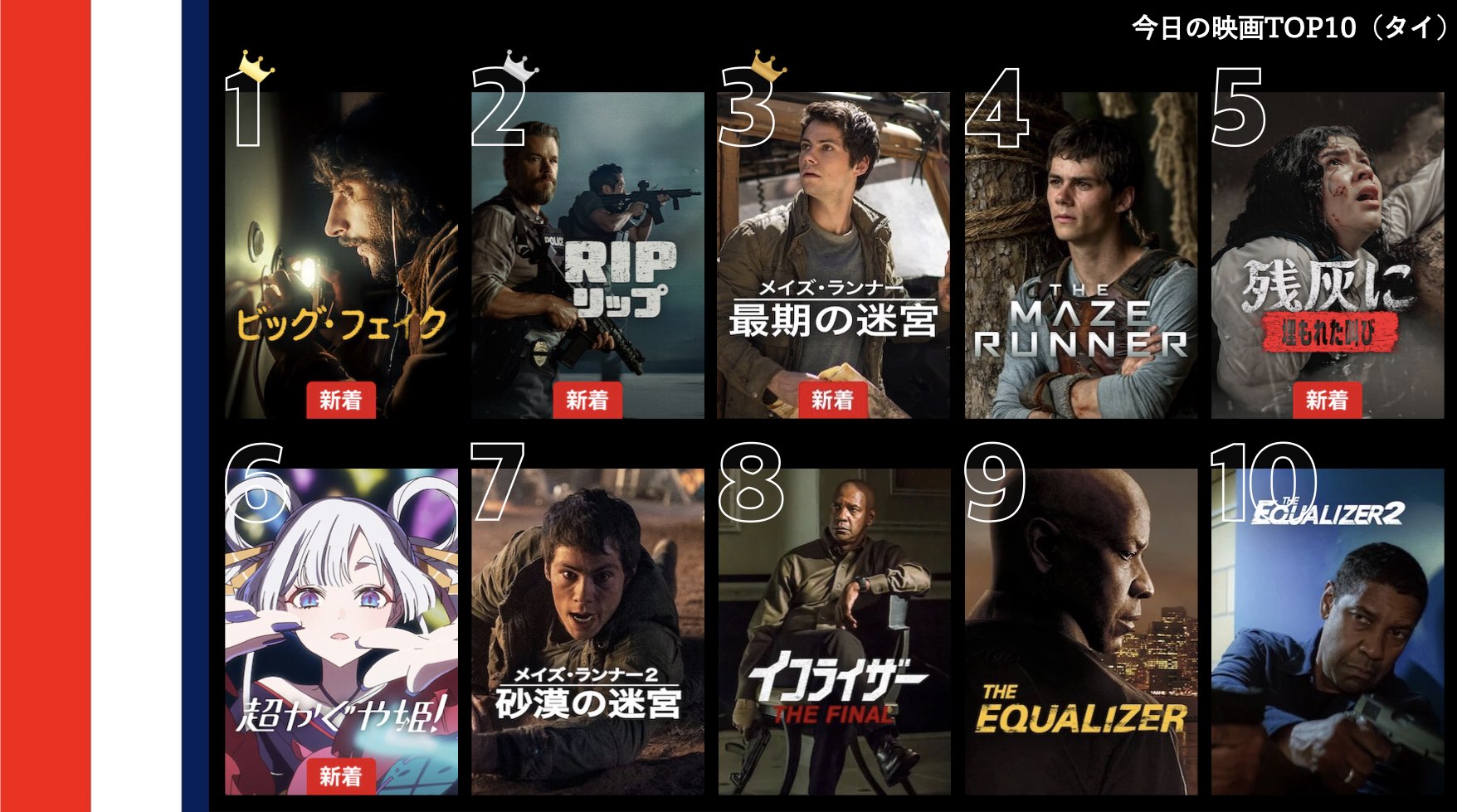 各国のNetflix (ネットフリックス) 内で公開されている「今日のTVシリーズTOP10」と「今日の映画TOP10」をもとに、世界の視聴動向を独自にまとめたランキングを毎日更新!主要国でいま、どんな作品が注目されているかチェックしてみましょう。